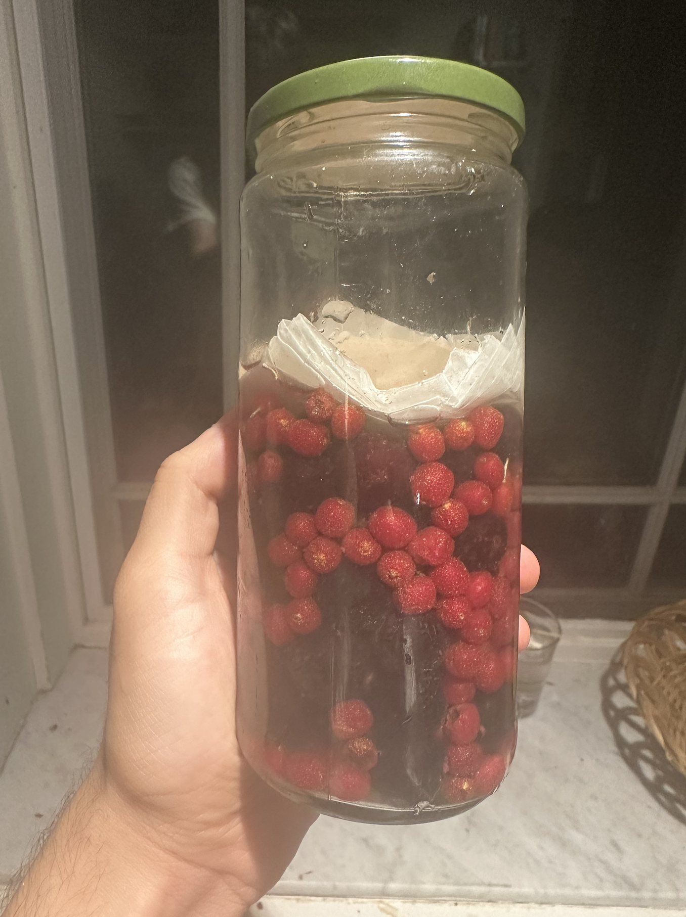 Autumn Olives and wild Concord Grapes. Only about 85 grams of each. Simply lacto-fermenting them.
